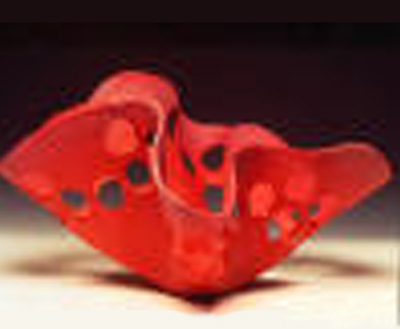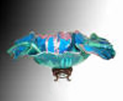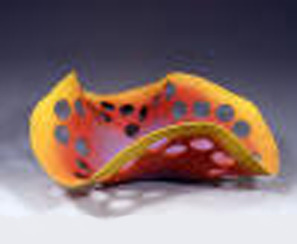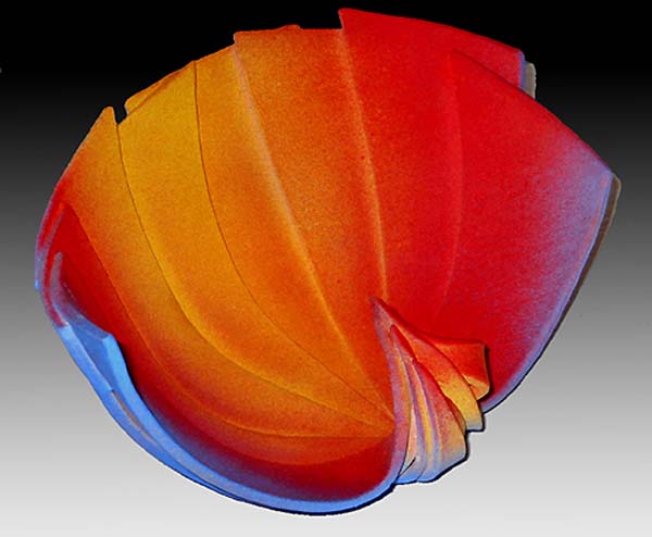 The bowl series includes ceramic pieces that have been draped, pounded, cut, and stretched. The surfaces range from a stained pastel like effect, to a glazed skin, created by a marbleized glass coating on top of the clay.