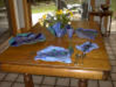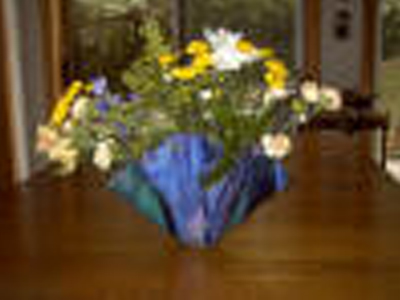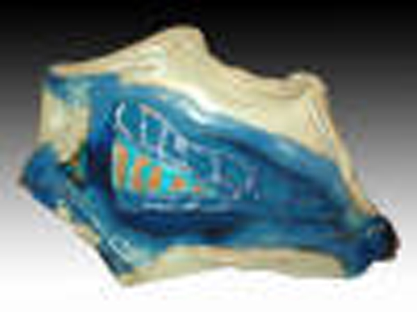 Also available are bowls and platters that can be used for serving food, hung on a wall, or just used as a decorative item. These clay pieces are layered with streaked and marbleized glass from a palette of 12 homemade colors.